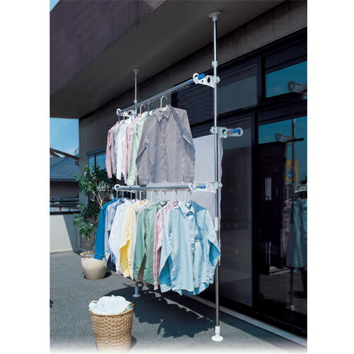 ◆商品サイズ(約)使用時:幅33.5〜58×高さ210〜300cm ◆耐荷重(約):1本当たり約8kg、竿受1組当たり16kg、全体約30kg◆付属品:竿受3組、ストッパー12個取付け可能竿数:最大6本取付け可能高さ:21〜30cm◆主要材質:ステンレス巻きスチールパイプ、ポリプロピレン、ABS樹脂、EVA樹脂